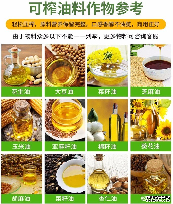 該設(shè)備可適用于菜籽、花生、茶籽、大豆、核桃、葵花籽等油料的生產(chǎn)加工,且壓榨出的油品綠色環(huán)保,對(duì)人體健康有益無(wú)害。購(gòu)買此機(jī)后可長(zhǎng)期穩(wěn)定作業(yè),對(duì)于中、小油廠和鄉(xiāng)鎮(zhèn)個(gè)體企業(yè)都很適用。